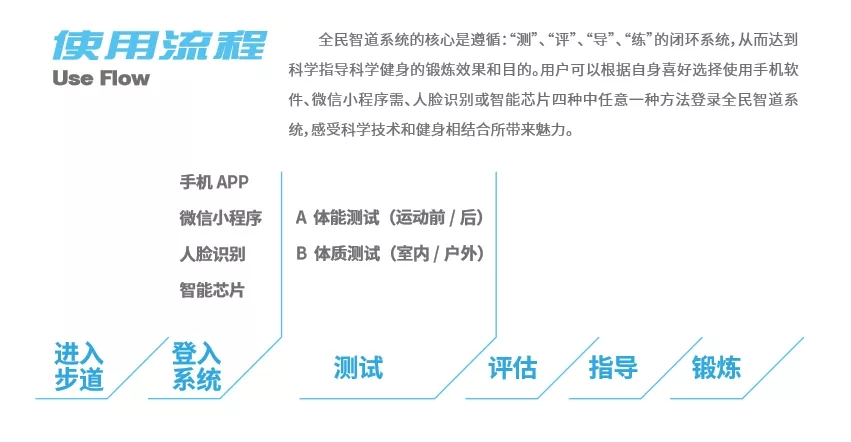 ¡°ÖÇÄܲ½µÀ¡±¿ÉÒÔΪÃñÖÚÌṩ¸üÈ«ÃæÖÇÄܵÄÔ˶¯ÌåÑ飬Ê״νøÈë¡°ÖÇÄܲ½µÀ¡±¼´¿É¸ÐÊܵ½¿Æ¼¼Õ»µÀµÄ÷ÈÁ¦£¬ÃñÖÚ¿ÉÒÔÆ¾¾Ý×ÔÉíϲºÃÑ¡ÔñʹÓÃÊÖ»úAPP¡¢Î¢ÐÅС·¨Ê½¡¢ÈËÁ³Ê¶±ð»òÖÇÄÜоƬËÄÖÖÖÐÈÎÒâÒ»ÖÖÒªÁìµÇ¼ȫÃñÖǵÀϵͳ£¬ÏµÍ³¼´¿ÉÊÕÂÞÓû§µÄÌåÄÜ£¨ºôÎü¡¢ÐÄÂÊ¡¢ÌåΣ©¡¢ÌåÖʺÍÔ˶¯Êý¾Ý£¬²¢¾¹ý´óÊý¾Ý·ÖÎö£¬Æ¾¾ÝÓû§ÌåÄÜ¡¢ÌåÖÊ״̬¸øÓè¿ÆÑ§»¯¡¢¸öÐÔ»¯µÄÔ˶¯½¨Òé¼°¿µ½¡Òûʳ½¨Ò飬»¹¿ÉÒÔͨ¹ýÊÖ»úʵʱÏíÊÜ¡°µç×Ó˽½Ì¡±ÖÇÄÜÓïÒô½¡Éí¸ÉÔ¤¼°Ô˶¯Ö¸µ¼µÄ·þÎñ¡£